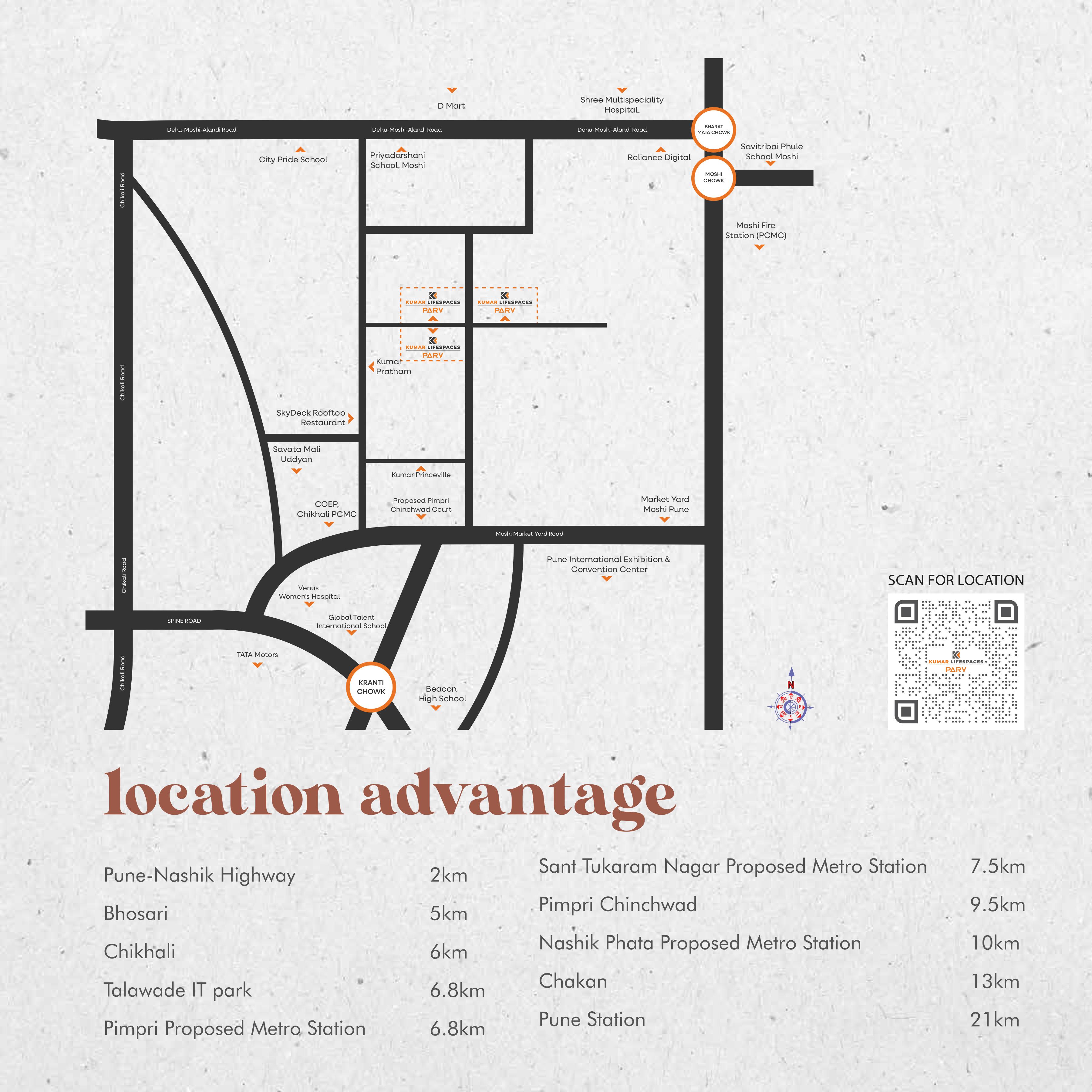 Situated in the prime area of Moshi, Kumar Lifespaces Parv offers proximity to the booming industrial belt of PCMC, Chakan, and Bhosari.